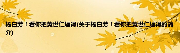 本文关于杨白劳!看你把黄世仁逼得的简介就讲解完毕,希望对大家有所帮助。