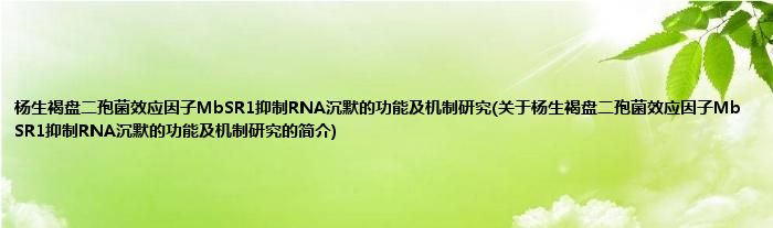 杨生褐盘二孢菌效应因子MbSR1抑制RNA沉默的功能及机制研究(关于杨生褐盘二孢菌效应因子MbSR1抑制RNA沉默的功能及机制研究的简介)