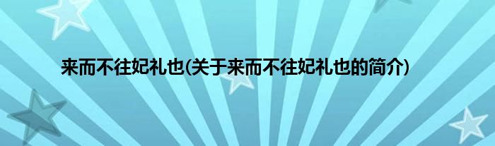 来而不往妃礼也(关于来而不往妃礼也的简介)