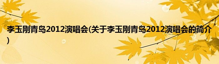 李玉刚青岛2012演唱会(关于李玉刚青岛2012演唱会的简介)