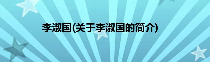 本文关于李淑国的简介就讲解完毕,希望对大家有所帮助。