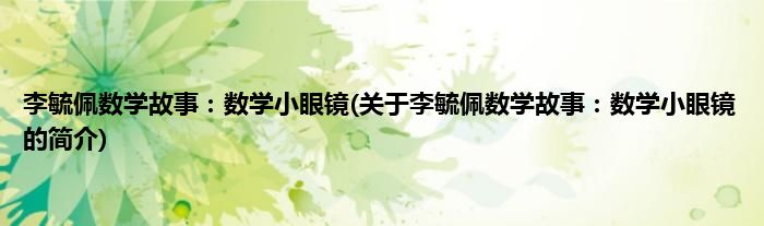 本文关于李毓佩数学故事:数学小眼镜的简介就讲解完毕,希望对大家有所帮助。