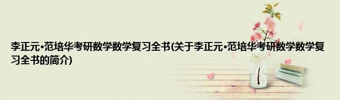 1、 《李正元·范培华考研数学数学复习全书》是2017年中国政法大学出版社出版的图书。