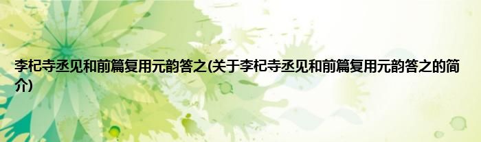 李杞寺丞见和前篇复用元韵答之(关于李杞寺丞见和前篇复用元韵答之的简介)
