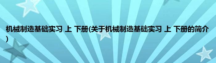 本文关于机械制造基础实习 上。下册的简介就讲解完毕,希望对大家有所帮助。