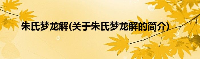 大家好,朱氏梦龙解,关于朱氏梦龙解的简介很多人还不知道,现在让我们一起来看看吧!