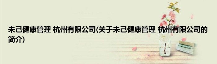 本文关于未己健康管理 杭州有限公司的简介就讲解完毕,希望对大家有所帮助。