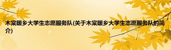 大家好,木棠暖乡大学生志愿服务队,关于木棠暖乡大学生志愿服务队的简介很多人还不知道,现在让我们一起来看看吧!
