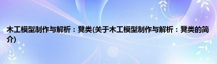 本文关于木工模型制作与解析:凳类的简介就讲解完毕,希望对大家有所帮助。