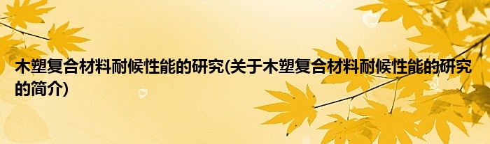 本文关于木塑复合材料耐候性能的研究的简介就讲解完毕,希望对大家有所帮助。