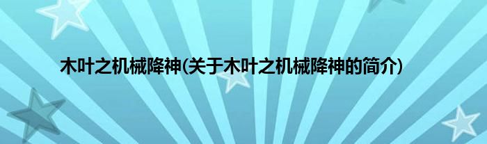 木叶之机械降神(关于木叶之机械降神的简介)