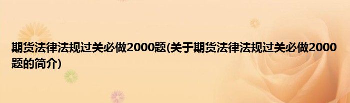 本文关于期货法律法规过关必做2000题的简介就讲解完毕,希望对大家有所帮助。