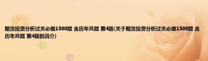 本文关于期货投资分析过关必做1500题 含历年真题 第4版的简介就讲解完毕,希望对大家有所帮助。