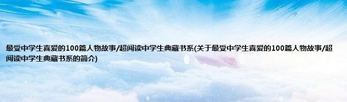 本文关于最受中学生喜爱的100篇人物故事/超阅读中学生典藏书系的简介就讲解完毕,希望对大家有所帮助。