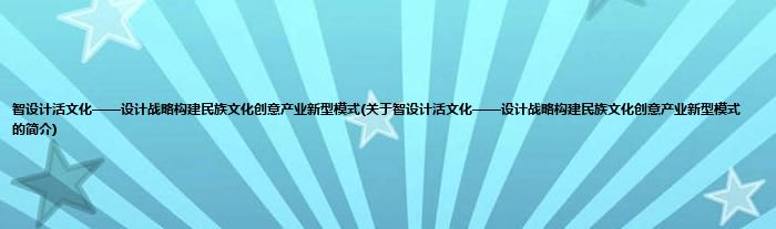 智设计活文化——设计战略构建民族文化创意产业新型模式(关于智设计活文化——设计战略构建民族文化创意产业新型模式的简介)