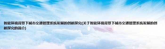 智能环境背景下城市交通管理系统发展的创新探究(关于智能环境背景下城市交通管理系统发展的创新探究的简介)