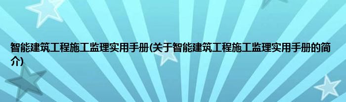 大家好,智能建筑工程施工监理实用手册,关于智能建筑工程施工监理实用手册的简介很多人还不知道,现在让我们一起来看看吧!