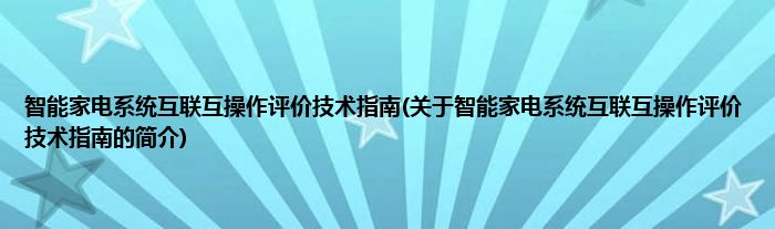 本文关于智能家电系统互联互操作评价技术指南的简介就讲解完毕,希望对大家有所帮助。