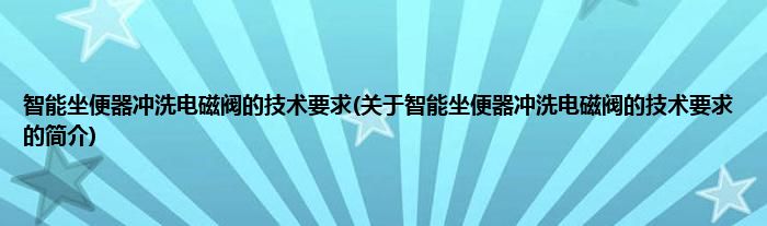 本文关于智能坐便器冲洗电磁阀的技术要求的简介就讲解完毕,希望对大家有所帮助。