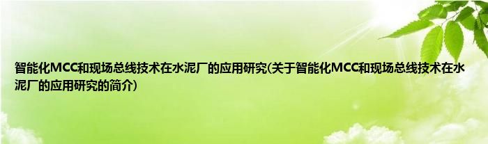 本文关于智能化MCC和现场总线技术在水泥厂的应用研究的简介就讲解完毕,希望对大家有所帮助。