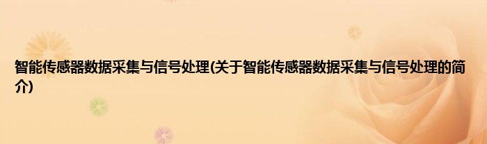 大家好,智能传感器数据采集与信号处理,关于智能传感器数据采集与信号处理的简介很多人还不知道,现在让我们一起来看看吧!