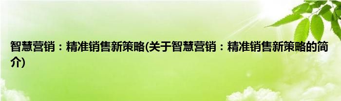 本文关于智慧营销:精准销售新策略的简介就讲解完毕,希望对大家有所帮助。