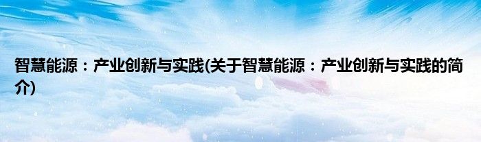 大家好,智慧能源:产业创新与实践,关于智慧能源:产业创新与实践的简介很多人还不知道,现在让我们一起来看看吧!