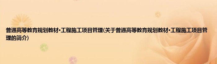 大家好,普通高等教育规划教材·工程施工项目管理,关于普通高等教育规划教材·工程施工项目管理的简介很多人还不知道,现在让我们一起来看看吧!