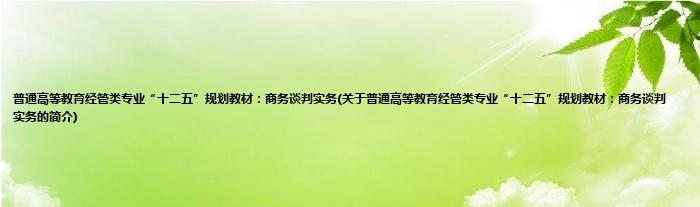 本文关于普通高等教育经管类专业“十二五”规划教材:商务谈判实务的简介就讲解完毕,希望对大家有所帮助。