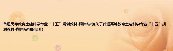 本文关于普通高等教育土建科学专业“十五”规划教材·砌体结构的简介就讲解完毕,希望对大家有所帮助。