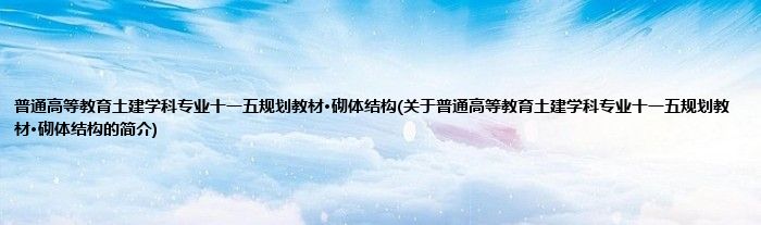 大家好,普通高等教育土建学科专业十一五规划教材·砌体结构,关于普通高等教育土建学科专业十一五规划教材·砌体结构的简介很多人还不知道,现在让我们一起来看看吧!