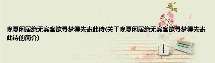 大家好,晚夏闲居绝无宾客欲寻梦得先寄此诗,关于晚夏闲居绝无宾客欲寻梦得先寄此诗的简介很多人还不知道,现在让我们一起来看看吧!