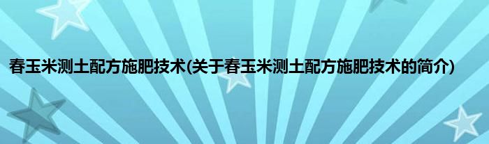 大家好,春玉米测土配方施肥技术,关于春玉米测土配方施肥技术的简介很多人还不知道,现在让我们一起来看看吧!
