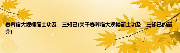春暮宿大观楼简士功及二三知已(关于春暮宿大观楼简士功及二三知已的简介)