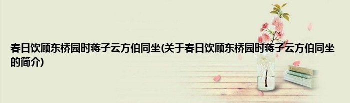 本文关于春日饮顾东桥园时蒋子云方伯同坐的简介就讲解完毕,希望对大家有所帮助。