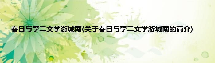 本文关于春日与李二文学游城南的简介就讲解完毕,希望对大家有所帮助。