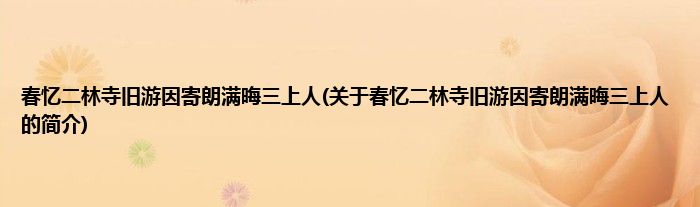 春忆二林寺旧游因寄朗满晦三上人(关于春忆二林寺旧游因寄朗满晦三上人的简介)