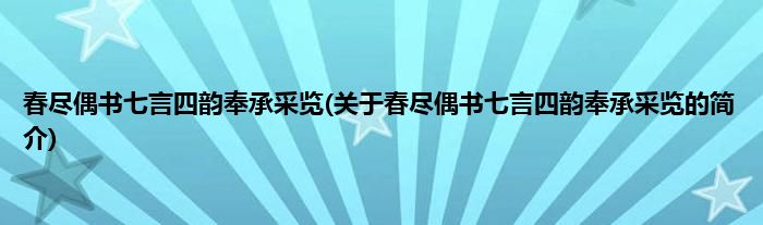 春尽偶书七言四韵奉承采览(关于春尽偶书七言四韵奉承采览的简介)