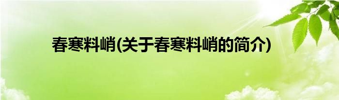 大家好,春寒料峭,关于春寒料峭的简介很多人还不知道,现在让我们一起来看看吧!
