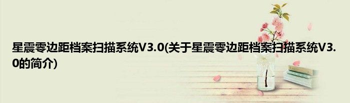 本文关于星震零边距档案扫描系统V3.0的简介就讲解完毕,希望对大家有所帮助。