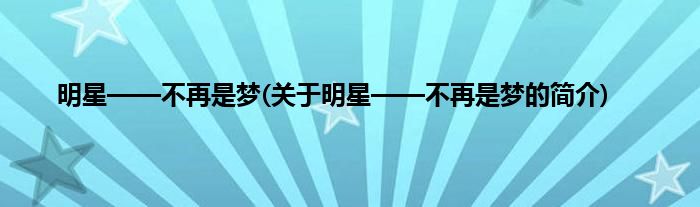 本文关于明星——不再是梦的简介就讲解完毕,希望对大家有所帮助。