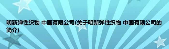 明新弹性织物 中国有限公司(关于明新弹性织物 中国有限公司的简介)