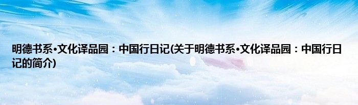 本文关于明德书系·文化译品园:中国行日记的简介就讲解完毕,希望对大家有所帮助。