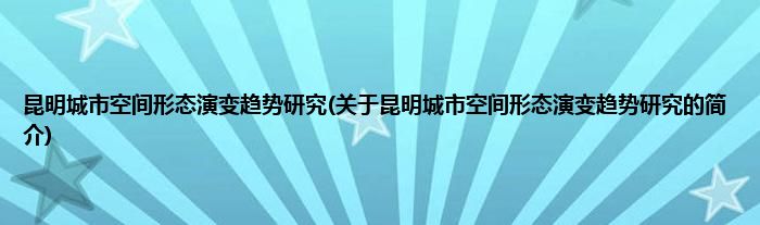 本文关于昆明城市空间形态演变趋势研究的简介就讲解完毕,希望对大家有所帮助。