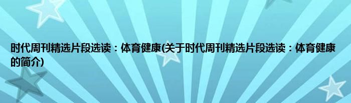 本文关于时代周刊精选片段选读:体育健康的简介就讲解完毕,希望对大家有所帮助。