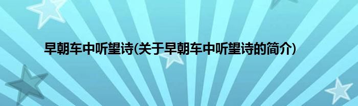 大家好,早朝车中听望诗,关于早朝车中听望诗的简介很多人还不知道,现在让我们一起来看看吧!