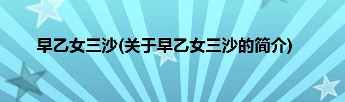 本文关于早乙女三沙的简介就讲解完毕,希望对大家有所帮助。