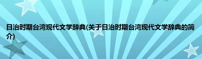 本文关于日治时期台湾现代文学辞典的简介就讲解完毕,希望对大家有所帮助。