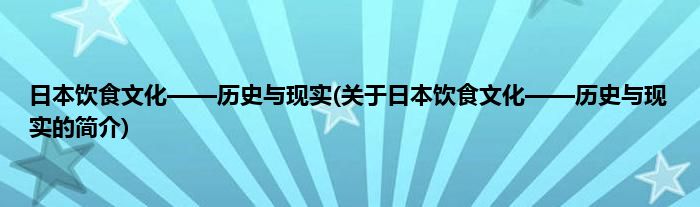 本文关于日本饮食文化——历史与现实的简介就讲解完毕,希望对大家有所帮助。