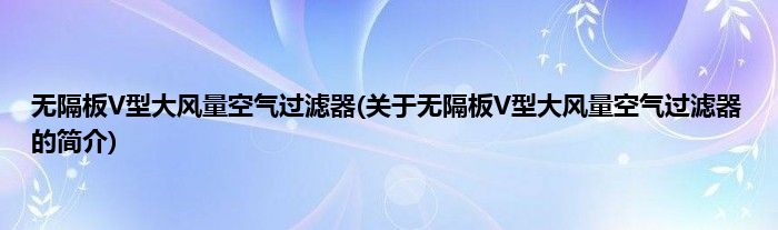 本文关于无隔板V型大风量空气过滤器的简介就讲解完毕,希望对大家有所帮助。